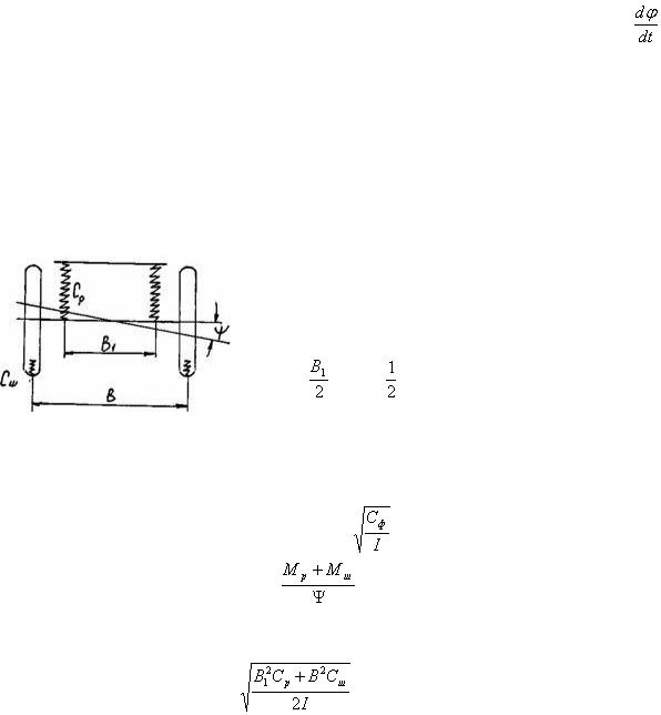 – шинами и рессорами, что может привести к вертикальным колебаниям оси балки. Наиболее опасным для движения автомобиля являются угловые вертикальные колебания оси. Для определения частоты таких колебаний рассмотрим положение оси в процессе колебаний, определяемое углом ψ (рис. 7).