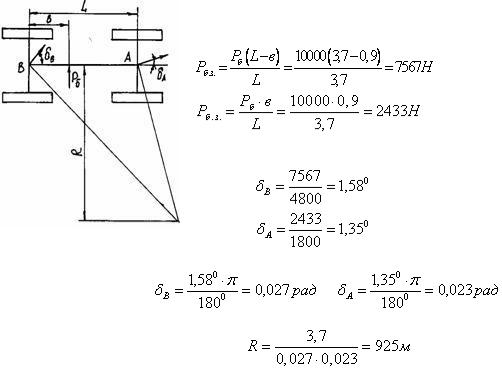 где Б - угол увода задних колес; А - угол увода передних колес.