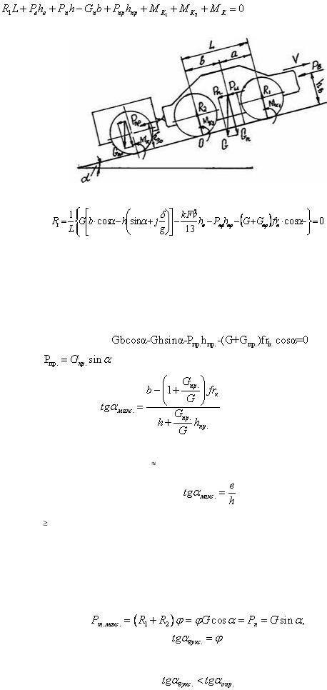 Автомобили по своим тяговым качествам или по сцеплению колес с дорогой не всегда могут въехать на предельный по опрокидыванию подъем. Поэтому при проектировании автомобиля необходимо установить, чем ограничивается максимальный угол подъема – опрокидыванием, буксованием или недостатком тяговой силы.