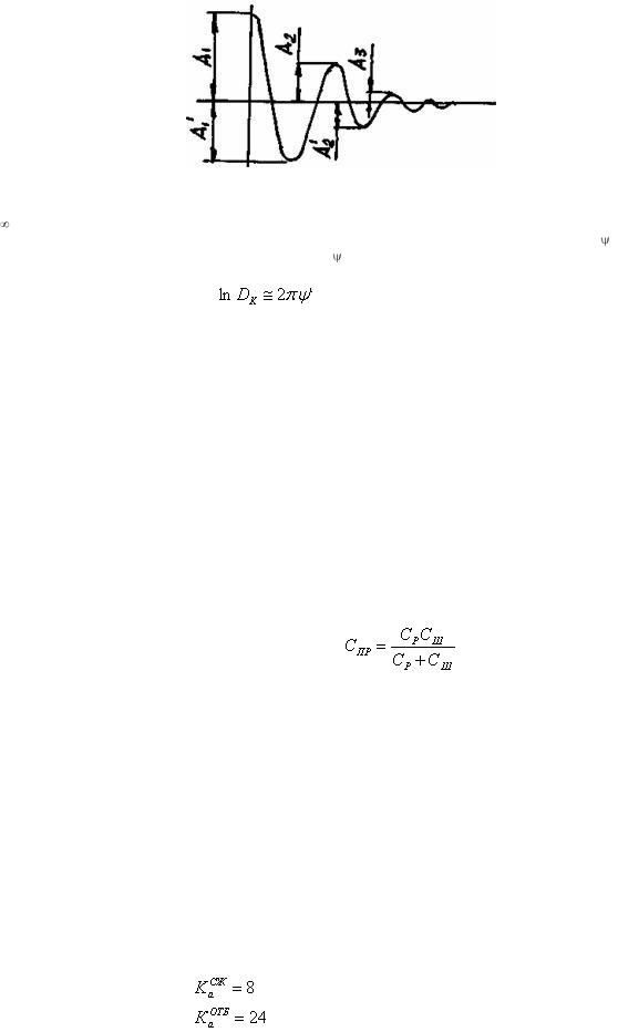 Эффективность затухания колебаний может характеризоваться интенсивностью убывания размахов смежных отклонений А1/А’1; А’1/А1… от положения равновесия (рис. 30) или отношением амплитуд А1/А2; А2/А3… последовательных периодов колебаний. Отношение Dk=A1/A2, показывающее, во сколько раз