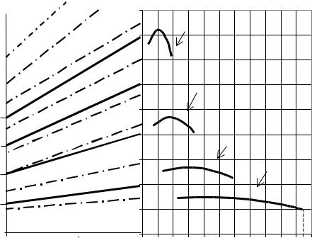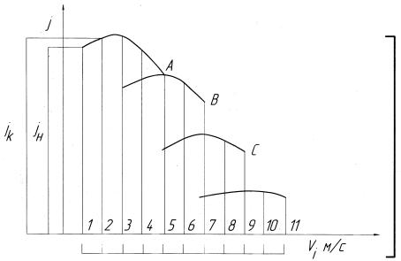 Точки А, В, и С пересечения или окончания кривых ускорений на различных передачах определяют скорости, при которых следует производить пересечение передач, чтобы интенсивность разгона была максимальной.