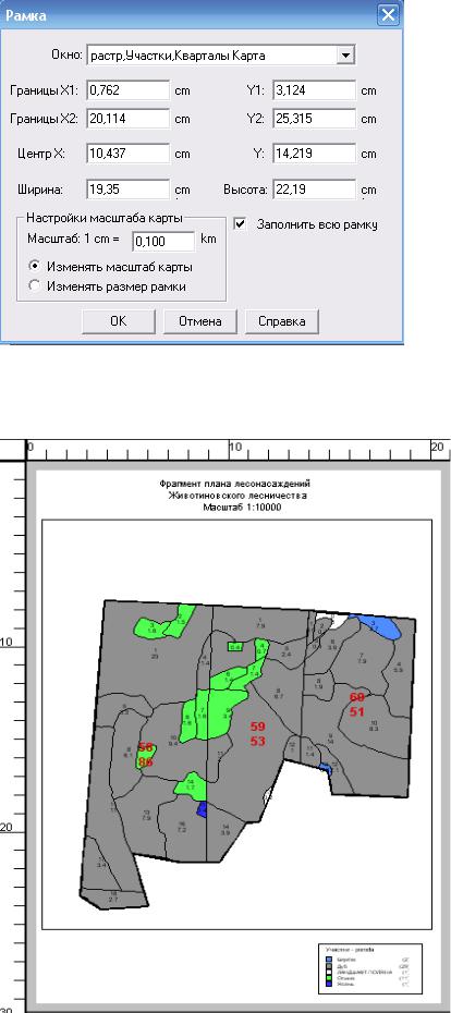 На экране появится макет чистого листа, на котором с помощью инструмента «Рамка» нужно нарисовать прямоугольную область, в которой будет отображаться карта. Сразу после этого появится диалоговое окно, в котором нужно изменить масштаб отображения карты на 1: 10000 (см. рис. 6.8) и нажать кнопку «Ok».