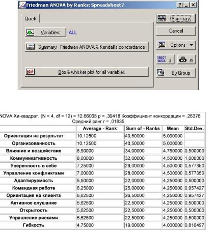 Коэффициент конкордации равен 0,26376. Из этой таблицы следует, что раз-