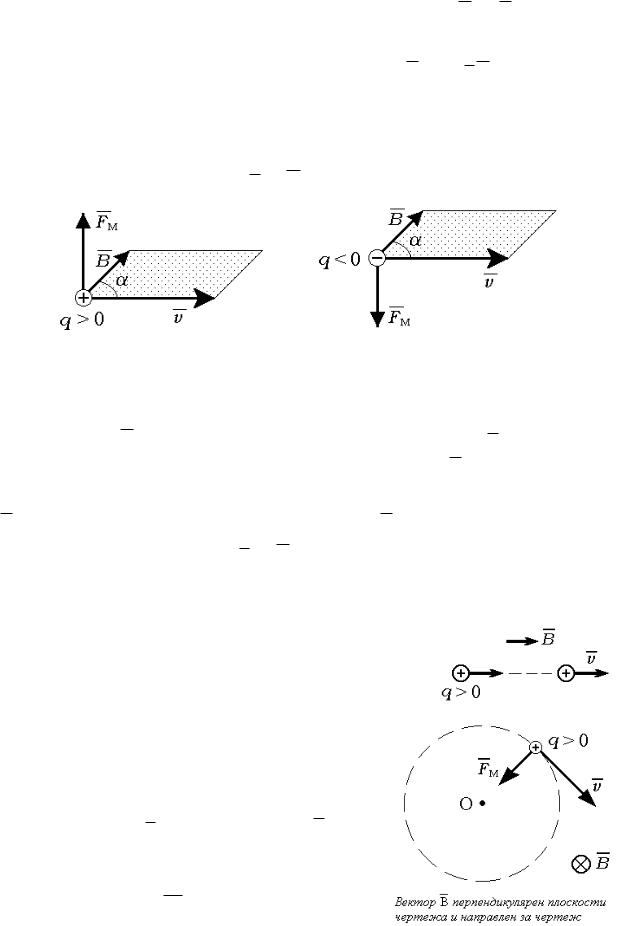 2) , то sin 1. Тогда Fм qvB . Так как вектор этой силы всегда перпендикулярен вектору скорости v частицы, то сила Fм создает только нормальное (центростремитель-