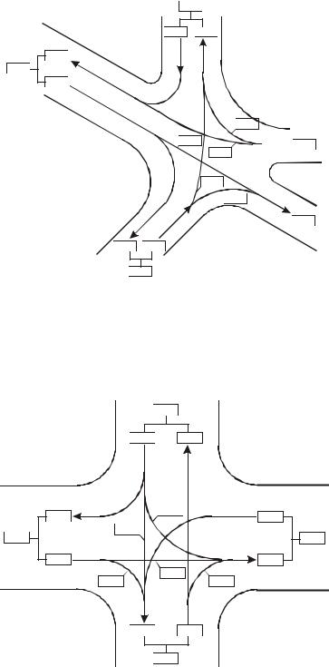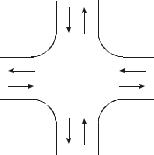 Согласно представленной схеме перекрестка, укажите на ней все возможные направления движения транспортных потоков, обозначьте все возможные конфликтные точки, произведите их оценку по 5-балльной системе и сделайте вывод о степени сложности перекрестка.