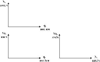 Постройте графики зависимости основных характеристик транспортного потока (скорость, плотность, интенсивность). Дайте краткое пояснение представленным характеристикам.