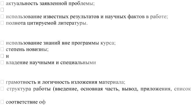 Критерии оценки реферата преподавателем