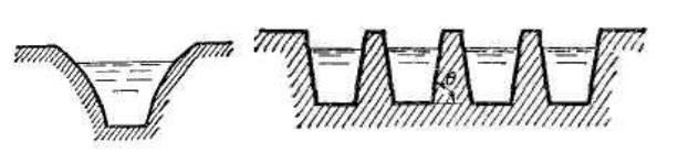 Обычно применяют щелевые водосливы с трапецеидальным сечением,