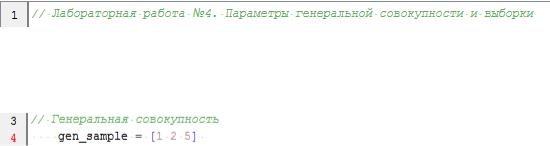 4.Рассчитать параметры генеральной совокупности, используя функции Scilab. Проверить совпадение с результатами расчѐта в п.1.