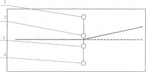1 - фотоэлемент для измерения силы света противотуманной фары в теневой области светового пучка; 2 - фотоэлемент для измерения силы света фары ближнего света в теневой области светового пучка, силы света фары дальнего света и силы света всех остальных световых приборов; 3 - фотоэлемент для измерения силы света фары ближнего света в световой области светового пучка; 4 - фотоэлемент для измерения силы света противотуманной фары в световой области светового пучка