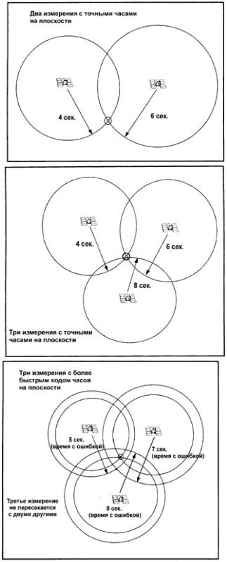 Теперь остается только выбрать правильную точку. Однако одна из точек всегда может быть отброшена, так как она имеет высокую скорость перемещения или находится на или под поверхностью Земли. Таким образом, зная расстояние до трех спутников, можно вычислить координаты определяемой точки.