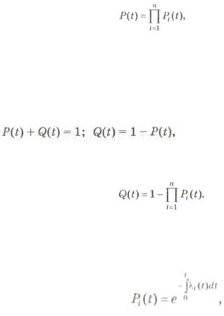 способных состояний всех элементов. Таким образом, работоспособность системы оценивается как произведение вероятностей безотказной работы элементов: