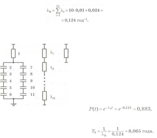 Решение. На рисунке 2, б изображена расчетная схема надежности, где все элементы включены последовательно. Интенсивность отказов конденса-