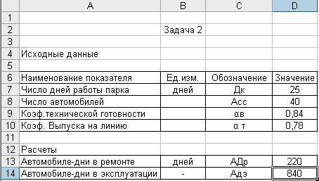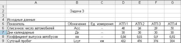 Расчеты выполняются для каждого АТП. Решение в EXCEL