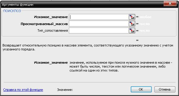 Каждый аргумент задается в отдельном поле. В нижней части диалогового окна приводится краткое описание аргумента.