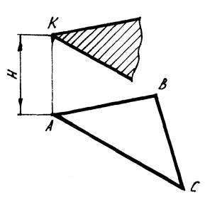 б) на перпендикуляре находим точку, отстоящую от плоскости треугольника на расстоянии Н;