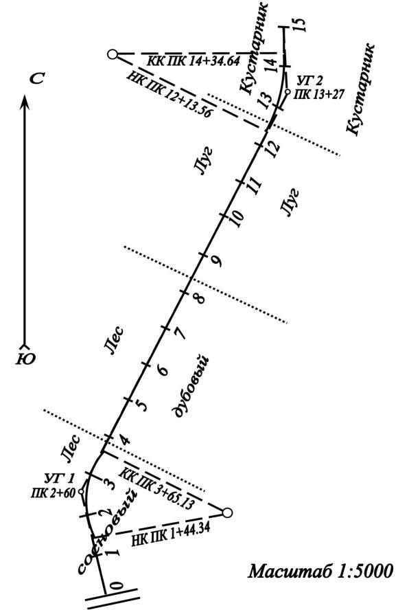 Рисунок 4.5 – План трассы лесовозной автомобильной дороги