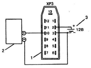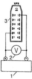 1 – регулируемый источник постоянного тока, 2 – контрольный вольтметр, 3 – разъем штекерный ХРЗ комбинации приборов