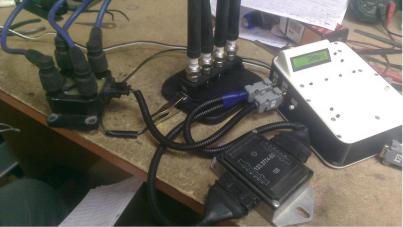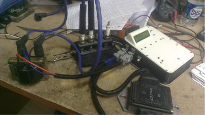 Соблюдая меры предосторожности, включить питание пульта. Включить кнопку «КН1», при этом, если катушка исправна, на всех 4-х свечах будет наблюдаться устойчивый искровой разряд. Если же на одной и более свечах искровой разряд не наблюдается или неустойчивый разряд, то эта катушка не исправна. Кнопками 7 можно менять частоту искрообразования. После проверки выключить кнопку «КН1». Выключить питание пульта.