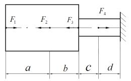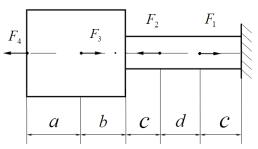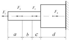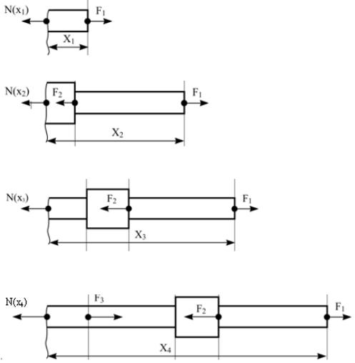 Проведем сечения на 4 участках и рассмотрим равновесие частей стержня (рис. 1.2). Составим уравнения равновесия для каждого участка (рис. 1.2):