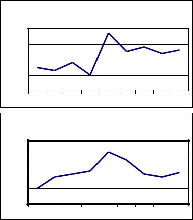 На рисунках 1а и 1в приложения 7 мы наблюдаем плавные колебания прироста (низкая частота колебаний). Средний период колебаний более 3 лет.