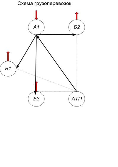 Рисунок - Схема перевозок Таблица 3 - Показатели работы автомобилей