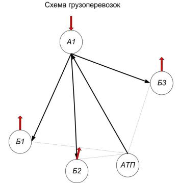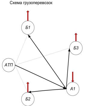 Рисунок - Схема перевозок Таблица 3 –Показатели работы автомобилей