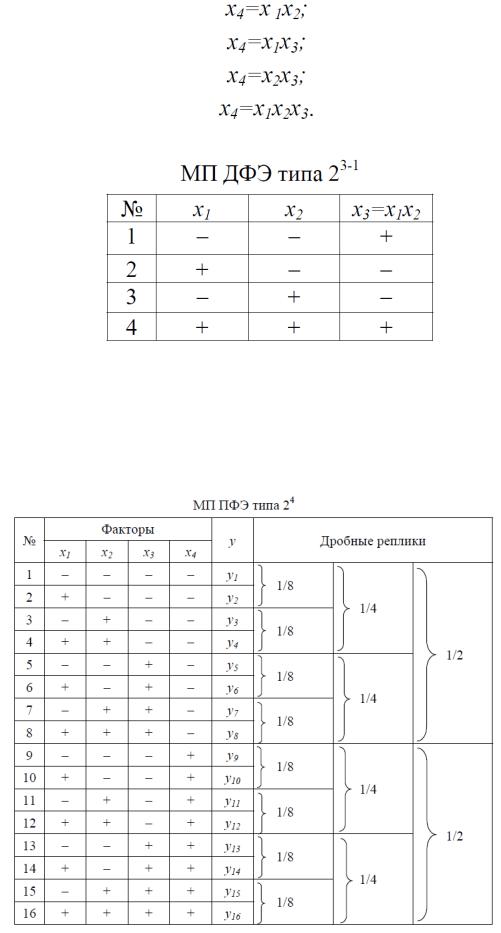 Эта система опытов называется дробными репликами, а сам метод ДФЭ – методом дробных реплик. Возможные дробные реплики от ПФЭ типа 24 приведены в табл. 11.