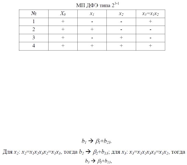 По данному плану мы можем определить коэффициенты регрессии b0, b1, b2, b3. Однако коэффициенты регрессии b1, b2, b3.будут смешаны с парными взаимодействиями.