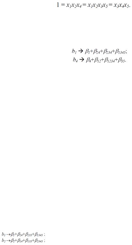 для x1: x1= x2x4 = x2x3x5 = x1x3x4x5; для x4 : x4 = x1x2 = x1x2x3x4 = x3x5 .