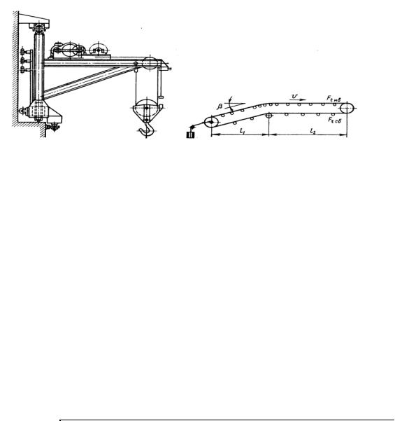 8.1. Рассчитать механизм подъема консольного поворотного крана на рис. 10(а) по данным табл. 15.
