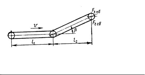 по горизонтали l1,l2 , угол наклона конвейера β и скорость транспортируе-
