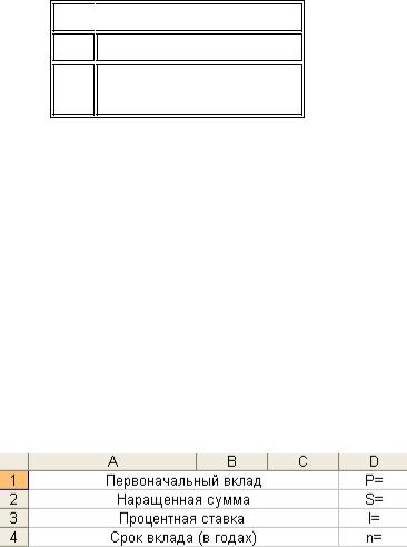 Далее введем в ячейку Е4 – срок вклада n=3. В ячейку Е2 введем формулу для определения наращенной суммы: = E1*(1+E4*E3) (рис.2).