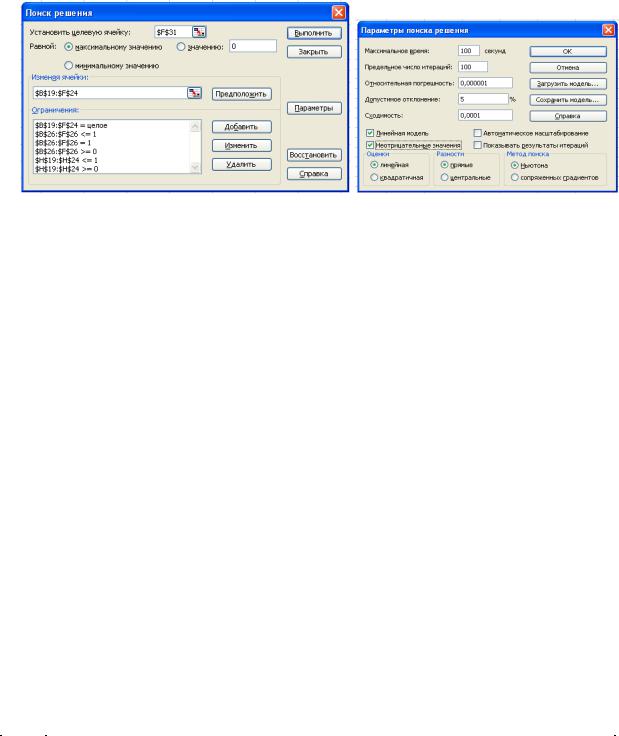 Параметры поиска решения установить флажки в окнах Линейная модель