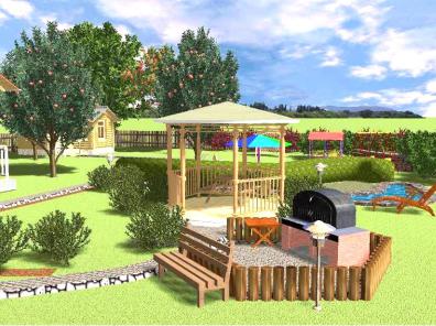 Кроме того, большинство компьютерных программ для ландшафтного дизайна имеют библиотеки объектов и растений: малые архитектурные формы,