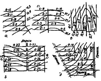 сразличными уклонами, т.е. с разными расстояниями между горизонталями, и на каждом участке перпендикулярно горизонталям провести линии. По каждой линии определяют уклон.