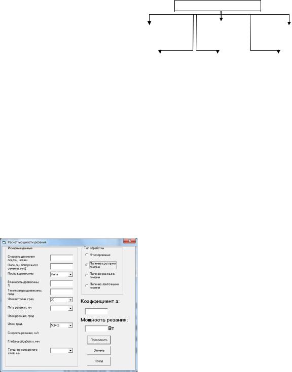 Рис.9.13. Пользовательский интерфейс модуля для определения величины мощности резания