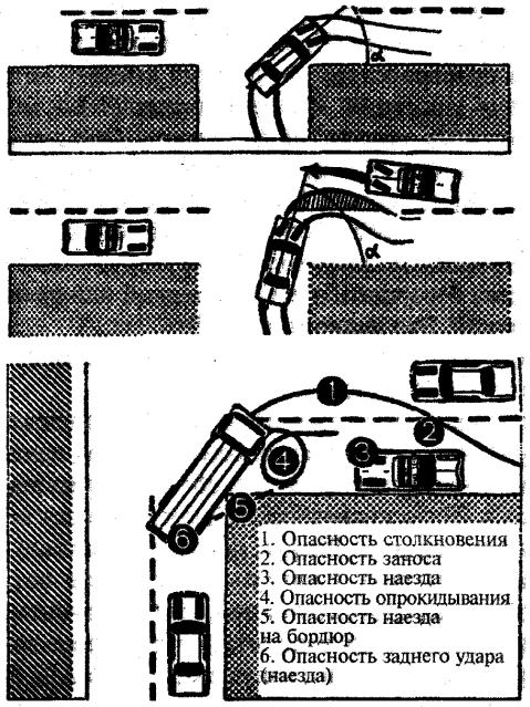 вать действие боковой силы инерции. Резкое вращение рулевого колеса может привести к тому, что автомобиль продолжит прямолинейное движение со скольжением передних колес или будет поворачивать с запаздыванием;