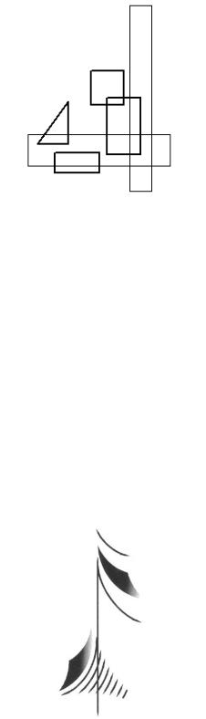 Чтобы преодолеть это, такое множество элементов можно разделить на группы, объединенные по какому-либо признаку. Зрительные группы могут быть образованы за счет взаимного приближения, путем подбора элементов по размеру, по их подобию, цвету, фактуре и т.д. Так, например, в композиции на рис. 7 за счет подобия линий и взаимного приближения сформированы две группы элементов, соединенные между собой прямой линией.