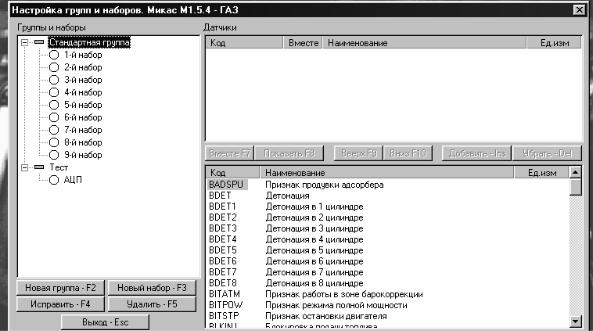 При диагностировании можно пользоваться стандартными наборами параметров. Однако для удобства работы каждый пользователь может создавать свои группы и наборы.