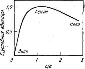 Рис. 140. Зависимость энергии упругой деформации матрицы Е от соотношения осей' с/а некогерентного выделения, имеющего форму сфероида)