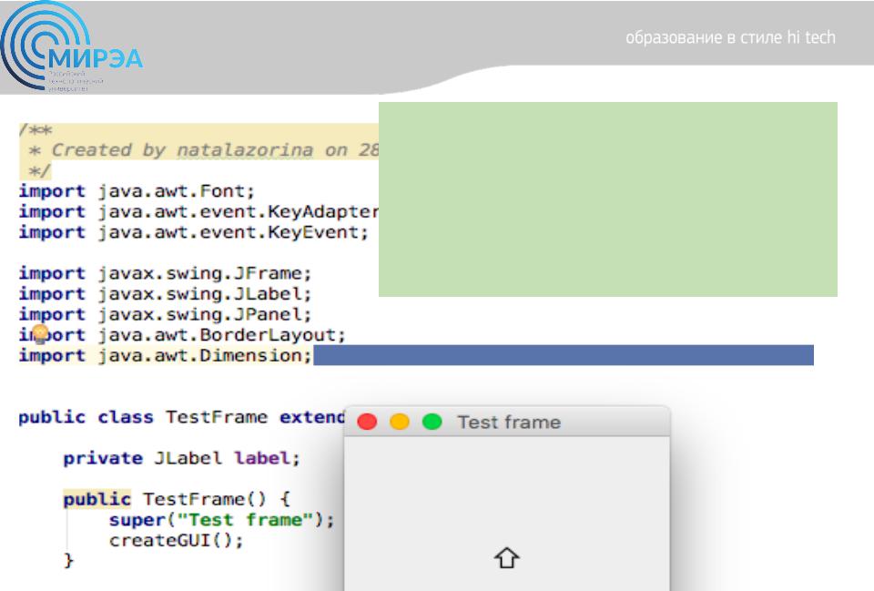 Здесьпроисходитобработкинажатия клавишкомпонентом JPanel.