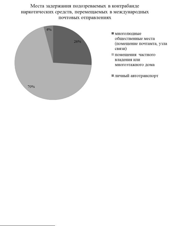 Тактические приемы и места задержания подозреваемого по делам о контрабанде наркотиков, перемещаемых в международных почтовых отправлениях, определяются в зависимости от способа доставки международного почтового отправления получателю4.