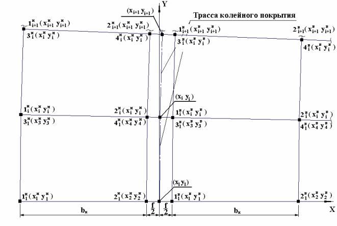 Рисунок 4 - Схема определения координат опорных точек плитных элементов колейного покрытия