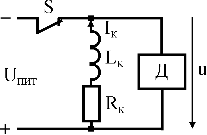 Рис.5.8. Схема подавления помех путем установки дополнительного элемента Д параллельно катушке