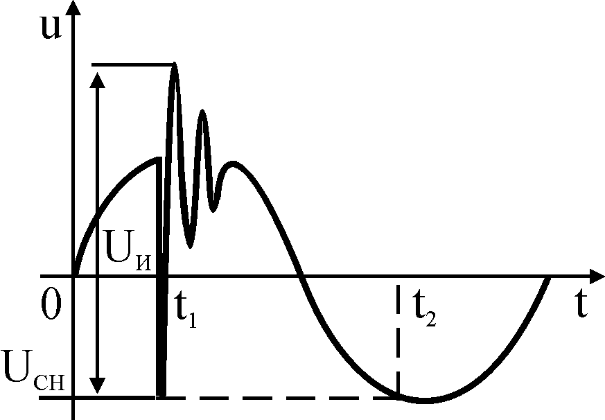 Амплитуда может во много раз превышать напряжение электропитания. Такое перенапряжение опасно для полупроводниковых приборов, подключенных к катушке, и даже для изоляции самой катушки. При отключении катушки воздушным выключателем возникают многократные пробои промежутка между контактами выключателя и создаются пачки импульсных помех в сети. Пробои сопровождаются также разрушением поверхности контактов, что снижает их срок службы. Необходимо снизить перенапряжение и устранить условия возникновения пробоев.