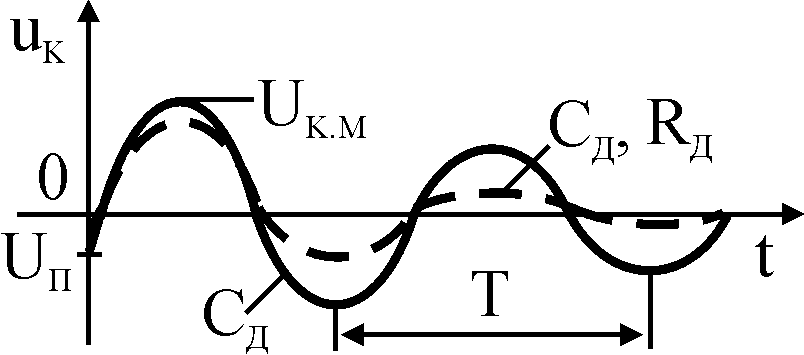 Максимальная амплитуда помехи может быть снижена в два раза просто путем разряда конденсатора после отключения, что достигается установкой параллельно конденсатору дополнительного разрядного резистора RД (рис.5.5).