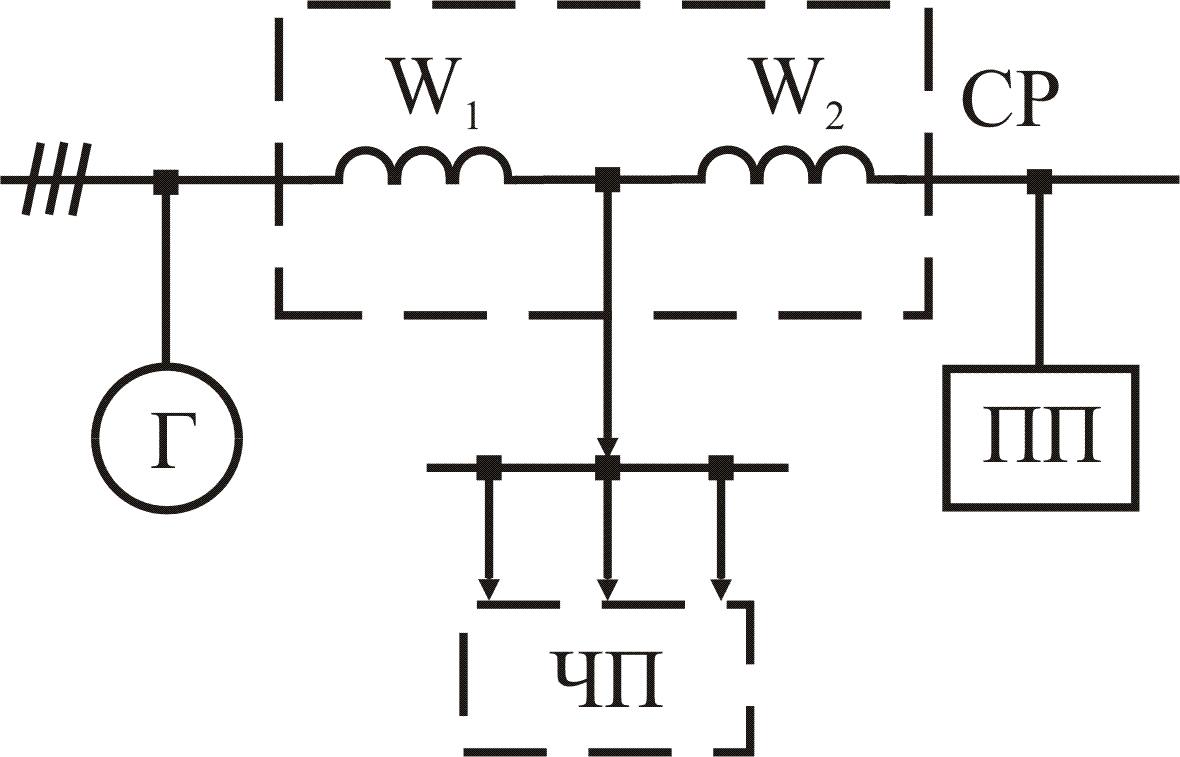 Рис.5.22. Схема питания ЧП через сдвоенный реактор СР