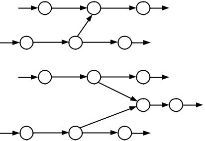 однородных работ, выполняемых на разных участках, может привести к возникновению в сетевой модели нереальных зависимостей между работами (смотри рис. 9).