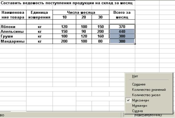 Рис. 7.4. Нахождение максимального значения при помощи Функции Автоматического вычисления